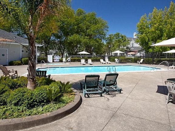 Spacious(1,229 sq. ft. according to tax records) condo townhouse in the coveted, gated, Casa del Sol complex. High ceilings, open plan first floor with private patio, open kitchen, fireplace and half bath. Second floor boasts 2 master suites, each with private bath and ample closets. Full sized washer and dryer. Attached private garage parking for 2 cars. New interior paint. Shows beautifully! Patio & AC. Perfect wine country weekend retreat!