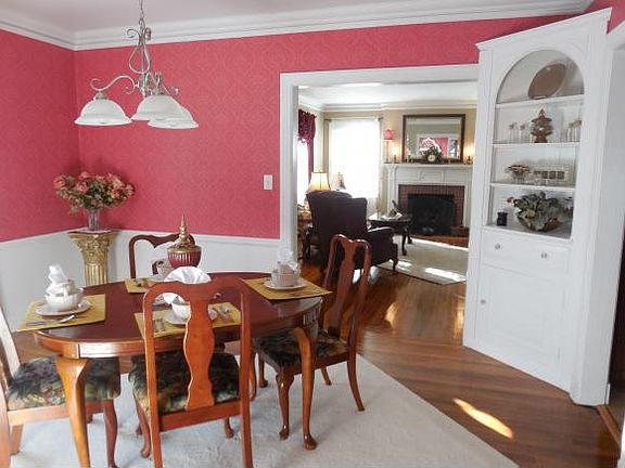 Burlington Historic District,this lovely home has refinished oak floors thru-out,8.5ft. ceilings,crown molding LR-DR-Office, LR has wood burning FP,open floor plan LR & DR office w/ outside entry,formal DR has built-in shelves-ktchn has cherry cabinets-Granite cntrs-ceiling fans-recessed lighting-built-in desk-appliances included, both bathrms renovated,xtra strg above 2car garage, HVAC 2010,roof 2011,professionally landscaped,move in ready