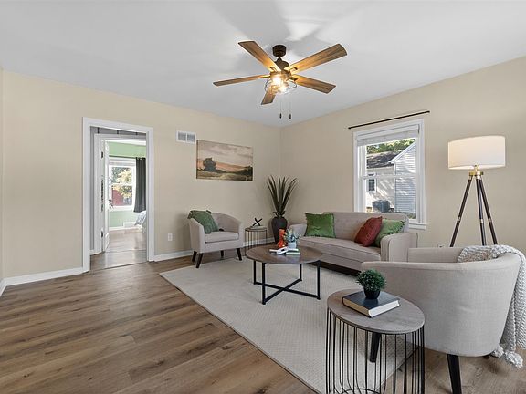 Welcome to this charming 3-bedroom home where vintage appeal meets modern updates. Step inside to find newer LVP flooring in the spacious living and dining areas, providing durability and style. The updated eat-in kitchen features sleek white cabinets, a trendy subway tile backsplash, stainless steel appliances, and an inviting butcher block breakfast bar. You'll love hosting dinners in the formal dining room, complete with a built-in hutch and a cozy window seat offering additional storage space. Natural light floods the living room, creating a warm and inviting atmosphere for relaxation or entertaining guests. The main level includes a convenient primary bedroom and a beautifully renovated bathroom showcasing charming shiplap walls with a stylish tile surround. Upstairs you'll find two additional bedrooms, one of which boasts a generous walk-in closet. Delightful vintage features such as the laundry chute and arched openings. Well-maintained fenced-in yard, complete with raised flower beds and a lovely garden area. 1-car detached garage. Newer back door and the home has an active radon mitigation system. Unfinished lower level. This adorable home's unique features and prime location make it a must-see! Don't miss your chance to make it yours!