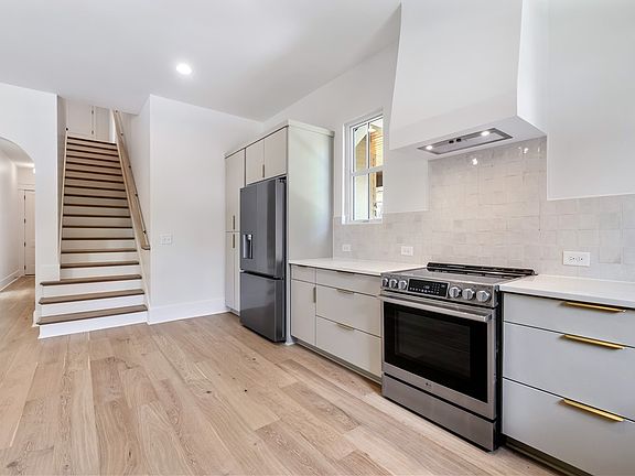 Steps from Opelika's storied downtown, this Craftman duet delivers charm and polish in equal measure. Grab coffee at Sidetrack, linger over dinner at Zazu or Cafe 123, and finish with something sweet from Stinson Bakery! Inside, sleek custom cabinetry, white-oak shelving, and a striking fireplace mantel set a stylish tone. Ten-foot ceilings below, nine above and tall eight-foot doors amplify the airy vibe, while rich hardwoods and shiny quartz countertops add a luxe touch. The main level owner's suite, generous two-car garage, and irrigated lawn keep daily life effortless. With inviting front-porch living and top-tier finishes, this home wraps modern luxury in historic Opelika character.