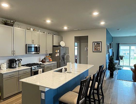 Dont wait to build! Gorgeous, better-than-new "Bennett" plan villa on a premium lot in coveted Durham Farms! The rocking chair front porch welcomes you to this 2 bedroom 2 bath home. The open kitchen features quartz countertops, huge island with seating and all kitchen appliances remain. A cozy living room features access to the backyard through sliding glass doors. The primary bedroom boasts an enormous closet and en-suite bathroom with a double vanity and walk-in shower. Flex room with French doors is perfect for a home office. Ceiling fans and lighting have been upgraded. The 2-year and 10-year warranties are transferable. You will love the community with tons of amenities including a pool, clubhouse, dog park, and more!
