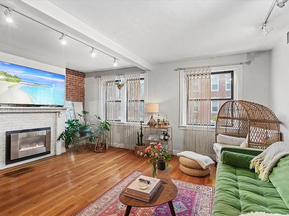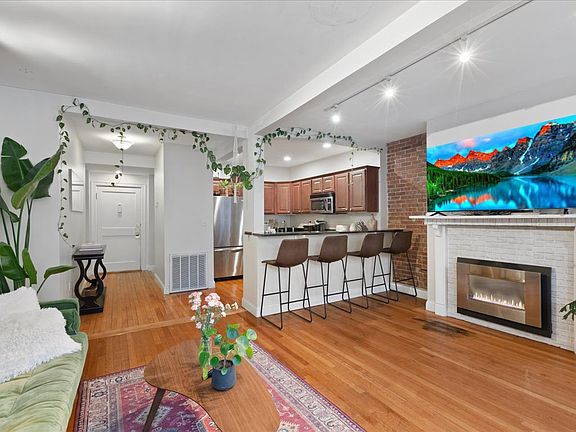 Enjoy entertaining in this open concept living room/dining room with elegant gas fireplace, exposed brick, track lighting and gleaming hardwood floors. The kitchen includes granite counters, gas stove, dishwasher, wine fridge and breakfast bar with seating for four! The spacious primary bedroom has double closets and an ensuite bathroom. Second bedroom includes a large window and large closet. The cozy third bedroom is perfect for a den or home office. Central heat & A/C, and in-unit laundry for your convenience. A huge storage unit in the basement is large enough for a home gym. Come see for yourself and then go out to dinner in one of North End's famous restaurants or grab a cup of coffee & pastry in a nearby café. Just one block from the Waterfront and the picturesque Harborwalk. Close to North Station,TD Garden, Faneuil Hall, Financial District, Water Taxi and Haymarket MBTA. Perfect for investor or first time home buyer. This one won't last!
