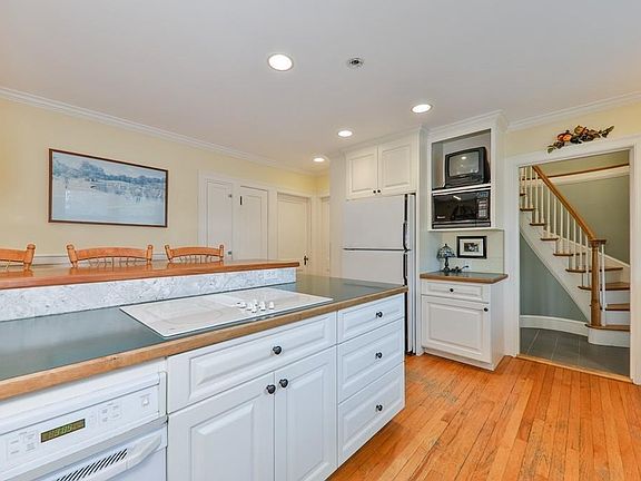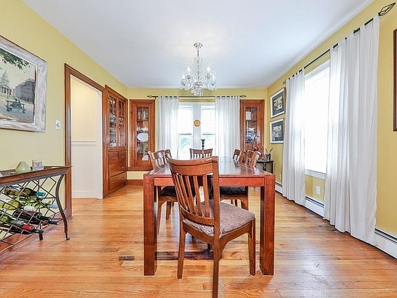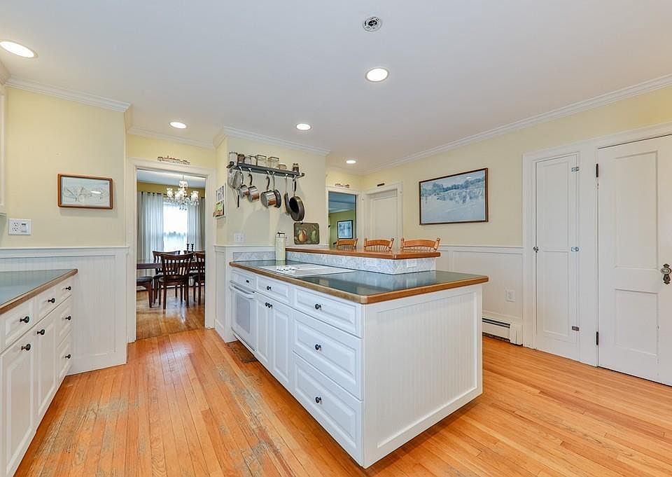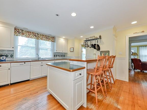 This large Cape-style farmhouse surrounded by the Charles and Lillian Sherman AVIS conservation land, in the scenic suburb of Andover. The first floor boasts a well-appointed, open layout and custom woodwork throughout, with beautiful crown molding, hardwood oak floors and built-in china cabinets and bookcases. The living room and dining room feature oversized windows that wash the space with natural light. The oversized kitchen is perfect for gathering with friends and family, and comes with excellent storage. A custom circular Oak staircase leads to the second floor, which is home to two bedrooms, including the master, with walk-in closet; an additional bedroom and office are located on the first floor. Located north of Boston, on almost an acre of land, dotted with fruit trees, this home falls within the coveted High Plain/Wood Hill school district and enjoys close proximity to historic downtown Andover, major highways and public transportation