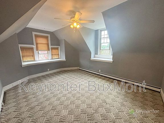 Discover the perfect blend of historic charm and modern convenience in this beautiful third-floor apartment located in a stunning stone Victorian home in the heart of Ambler. This apartment boasts two large bedrooms, providing ample space for relaxation and comfort. Enjoy a unique turret room, ideal for an office, reading nook, or cozy living room. The eat-in kitchen is equipped with a stove/oven, refrigerator, and dishwasher, making meal prep and clean-up a breeze. The unique layout ensures plenty of natural light throughout the apartment, creating a warm and inviting atmosphere. Benefit from the convenience of shared laundry facilities in the basement and extra storage space available. Enjoy the partially fenced shared backyard, perfect for outdoor relaxation or entertaining. One parking space is included, with ample street parking available nearby. Nestled in the charming town of Ambler, this apartment offers a unique living experience with easy access to local shops, dining, and entertainment. Don't miss the opportunity to make this distinctive apartment your new home! Pets allowed for an additional fee (breed restrictions apply) Tenant responsible for electricity, gas and internet. Amenities: Laundry on-site, Living Room, Sump Pump, Yard (partly fenced)