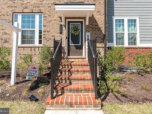 WELCOME TO 416 HOLLOWAY ST - Located in the highly sought after GREENLEIGH AT CROSSROADS COMMUNITY*This beautiful end of group/brick front townhome is less than 2 years old*Featuring 4 bedrooms, 3 1/2 bathrooms, a fully finished lower level, 2 car detached garage & over 2700 sq ft of finished living space*The main level includes a nice open concept floor plan with a large living room, gourmet kitchen with SS appliances, super sized island, quartz counter tops & atrium door leading to the rear deck & fenced in backyard*The upper level hosts 3 bedrooms, 2 full bathrooms & the laundry area*The primary bedroom is complete with a large walk in closet, beautiful tray ceiling & private garden bathroom with soaking tub, separate shower & double sink vanity*The fully finished lower level has a 4th bedroom/den, full bathroom, family room & storage room*Loaded with the finest amenities & upgrades, this home is move in ready* Greenleigh at Crossroads offers several community amenities to enjoy including an outdoor pool, gym, clubhouse, walking trails, park areas, play areas and dog park; all within an easy walk to the community's shops and restaurants*This is VA financed & has an assumable 4.75% interest rate*