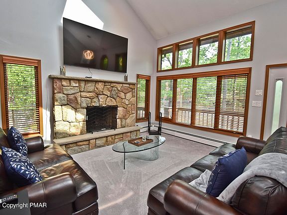 Property is Under Contract and considering back-up offers only at this time. 3-level 4bd/3ba Contemporary in a STR friendly community w/ amenities. The BRIGHT & AIRY Living Room w/ STONE FIREPLACE flowing into the Dining Area w/ sliders to screen porch. UPDATED Kitchen w/ skylights that flood the space w/ natural light & sliders to the back deck, ideal for entertaining. Main floor has a bd & bth w/ JETTED TUB. Upstairs offers 2bds, bth, & versatile loft area. Downstairs is dedicated to leisure & entertainment, boasting a Family Room w/ WET BAR & brick wood stove, 4th bd, & bth w/ laundry. This home also has a front porch, 2-car garage, circular driveway, public water/sewer, & for optimal comfort, this home is has wall-mounted split systems for personalized climate control.