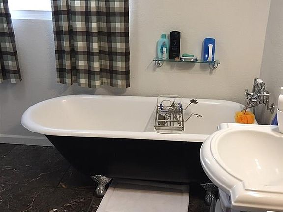 A cut above, featuring a master suite with heated bathroom floor, and the comfort of central air conditioning and thermal windows. Look! The electrical service is updated, and so is the kitchen. For your convenience, off street parking, two storage sheds, and a fenced back yard. This one level beauty has the ambience of a mountain cabin. Better hurry!