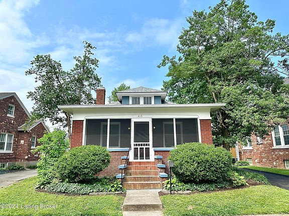 Introducing 416 Iola Rd, a charming brick Craftsman style Bungalow with 22' Screened Front Porch.The most convenient area of St Matthews, just 3 blocks from Seneca Park Walking track, and around the corner from coffee shops, banks and grocery. Home features inlay designed hardwood floors, a large elegantly casual Living room, Dining room with a wall of windows, and 2 spacious bedrooms. You'll love this classic bath with basket weave tile. The kitchen a has ample tall Maple cabinetry and a new refrigerator., other appliances were replaced in the last few years. There are stairs to an attic that has many possibilities and great storage. The waterproofed Basement has an outside entrance door and has a finished room that's a great office or crafts room. There's also a 2nd refrigerator.... You'll enjoy sitting on the back porch watching your best buddy explore a fenced back yard. The garage doors have been removed. It has a new roof and will protect your car from the weather. This home has been well maintained over the years and is now ready to welcome new owners that will enjoy all of it's charm and character.
