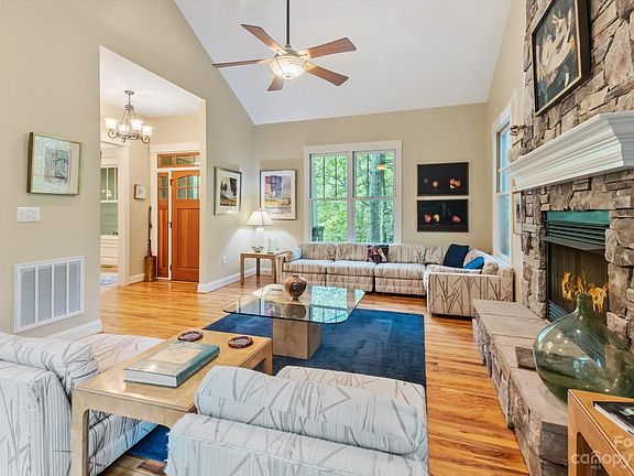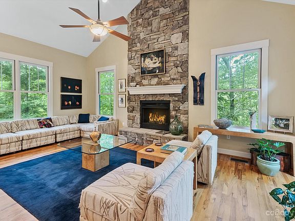 Black Mountain's newest gem is now available. This 4 bedroom arts and crafts style home offers end of the road privacy and seclusion. This one owner home has never been available for purchase. Standing on the back deck you can hear the stream at the bottom of the hill through the woods. Desirable features such as a primary bedroom on the main level, 2 car garage also on the main level including the laundry room just off the garage. The living room has vaulted ceilings with a wonderful fireplace. Hardwood floors throughout most of the main level w/ some carpet in an upstairs bedroom. There are 2 bedrooms and a full bathroom on the second level. The kitchen is large and open with plenty of storage and has access to the rear private deck. Downstairs is another full bedroom, bathroom, living room with a fireplace and a bar area. There is also a large deck on this lower level as well. The home is covered by a 2-10 home warranty and will transfer to the buyer for 1 year.