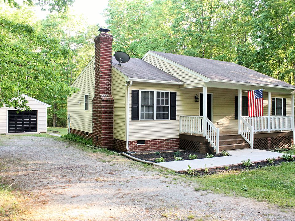 Cute, clean & move in ready! One level living set back off the road for just enough privacy. This 3 bedroom, 2 bath home features a living room w/ vaulted ceiling, hardwood flooring & brick gas fireplace. Spacious eat-in kitchen w/ oak cabinets & all appliances convey! New concrete sidewalk & fresh mulch. Resting on 3.19 acres this home has so much to offer! Comes w/ a 1 year home warranty!