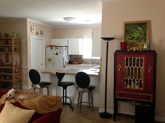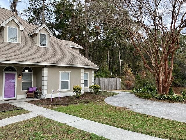 Charming 3-bedroom, 2.5 bath home ready for personalizing and updating. Bordered by retention pond; backs to Spanish Moss Trail. @1/2 mile to Battery Creek in either direction. 3 miles to either downtown Beaufort or Port Royal. Entry hall, main floor primary bedroom; 9' ceilings. Large porch w E-Z Breeze Vinyl Windows. 5 walk in closets, fenced; hardy board divider, shed. Perimeter sidewalk; patio. 30 amp. No short term rentals and no rv's. (Non working fireplace. Square ft. guesstimated. Roof, HVAC; hwh, dishwasher, garbage disposal, microwave and fence since 2013. I built this home in 1996 as my future retirement home and returned to it in 2013. I have loved living here. The neighborhood is quiet and there are lovely neighbors. Needs paint, carpet, update kitchen & bathrooms.
