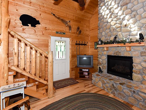 Updated log cabin in gated golfing community! Cabin features Hickory Flooring, carpet in the bedrooms, 1 full bath on the main level,private bedroom, 1 full bath on the second level with jetted and sep. shower. Also, you will find a lovely loft designed to use as a tv/lounge area or office, a second bonus room currently being used as a bedroom. An added bonus is a basement workshop with may outlets placed at work bench height. Being sold furnished with exception of a few items. Sq.ft. is approx. Buyer's agent to verify.