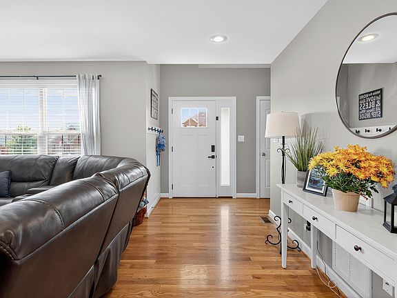 Stylish 5-Bedroom Stunner with First-Floor Primary & Gorgeous updates. Beautiful 1½-story home offering 5 bedrooms and 2.5 baths with the primary suite conveniently located on the main floor. Primary suite features double vanity, 4' shower, soaking tub and walk-in closet. This home boasts exceptional curb appeal with brand-new landscaping and rubber mulch, creating a welcoming first impression. Inside offers spacious open living and dining areas. Enjoy gorgeous wood floors throughout the main living areas and a cozy fireplace in the living room for added charm. The kitchen features granite countertops, black stainless steel appliances, and ample space for cooking and entertaining. Versatile second-floor layout with 4 bedrooms and full bath. Access large deck from the eat-in kitchen. Step outside to a large backyard enclosed by a 6' privacy fence, perfect for outdoor living. Other features include laundry room in the first floor and oversized 2-car garage with newer epoxy floor and door to the exterior. A wonderful blend of comfort, style, and functionality— don't miss this one!