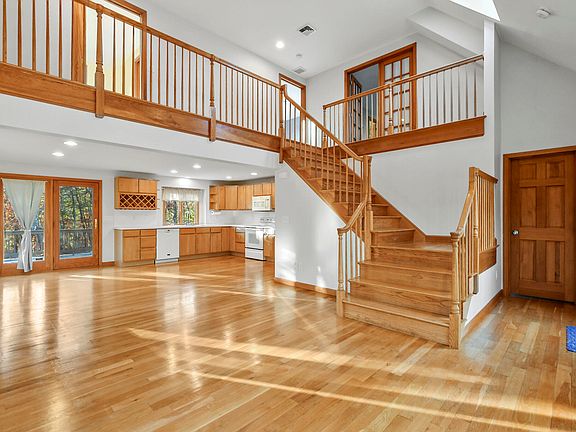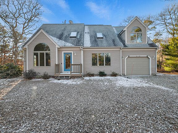 Nestled on a private 3-acre lot, this 3-bedroom, 3-full-bath gem offers tranquility and space, both inside and out. As you step into the foyer, you're greeted by soaring cathedral ceilings that flow seamlessly into the bright and airy living room. The open-concept layout creates an inviting space, perfect for entertaining. There is an option for first floor living with a bedroom, full bathroom and laundry on the 1st floor. Upstairs, you will find a spacious primary suite with walk in closet, and en-suite bathroom with heated floor and additional washer/dryer hookups. Also upstairs, there is an additional bedroom, Jack and Jill bathroom and bonus room with Juliet balcony. The bonus room offers endless possibilities - home office, playroom, or guest space. The full, unfinished basement with tall ceilings is brimming with potential - imagine a home gym, workshop, or additional living space. Close to Mares Pond, downtown Falmouth and highway access. The home offers updated heating system (2023), on demand hot water, owned solar panels (2014), Anderson windows throughout, central vacuum, central air and a generator!
