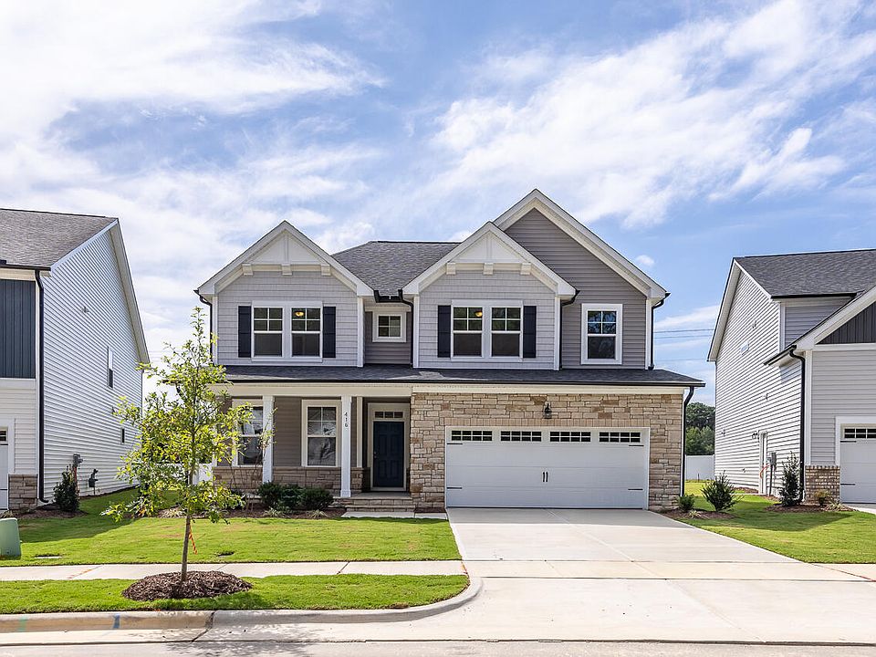 Our popular Willow plan offers 5 bedrooms including a first floor guest suite. Perfect for your family and guests. Owner's bath includes a spa like shower. Formal dining, and gourmet kitchen open to spacious family room. Rear deck is covered perfect for entertaining. Great location! GPS: 1427 Old Bunn Rd.