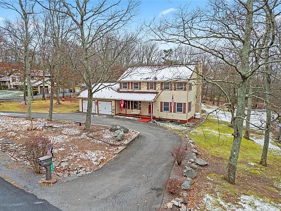 Welcome to your Pocono paradise! This 3-bedroom, 2.5-bath home is perfectly situated on 1 acre of open, flat land surrounded by wooded views, offering privacy and the freedom of NO HOA—your land, your rules. A half-circle driveway provides ample parking and leads to a 2-car garage and a charming front porch with a swing, perfect for relaxing and enjoying the serene surroundings. Inside, the thoughtfully designed floor plan includes quiet spaces ideal for an office or study and an open-concept Kitchen, Dining Room, and Family Room, perfect for gatherings and conversation. Natural light streams through large windows, showcasing scenic views from every room. The Kitchen is a standout, featuring a spacious pantry, upgraded Stainless Steel appliances, and picturesque backyard views. Additional features include a pellet stove and propane stove for energy-efficient heating, updated bathrooms, and upgraded flooring. Upstairs, three well-sized bedrooms, including a tranquil primary suite, provide comfortable living space for everyone. Step outside to the large rear deck, an ideal spot for your morning coffee or hosting lively backyard barbecues. The expansive yard, bordered by trees, offers endless possibilities for outdoor fun, from gardening to play. Located just minutes from the Pocono Mountains, this home combines modern upgrades with the charm of country living and proximity to skiing, hiking, lakes, dining, and more. Don’t miss the chance to live your Pocono dream!