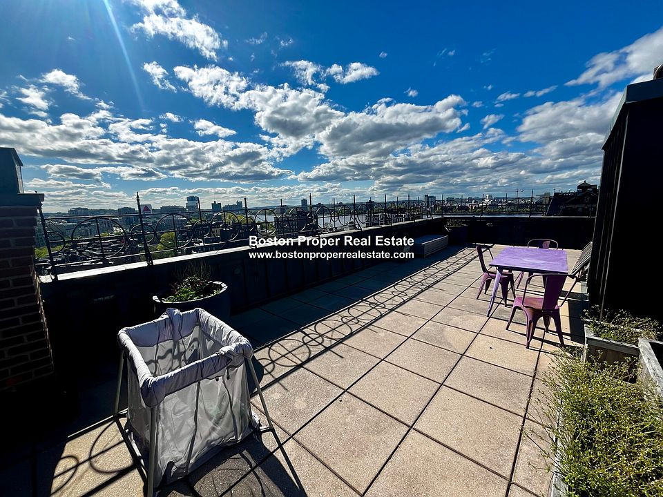 AVAILABLE SEPTEMBER 1ST Back Bay Two Bedroom, Two Bath with Private Roof Deck! Live in one of Boston's most prestigious neighborhoods in this spacious and charming two-bedroom, two-bathroom apartment located on iconic Marlborough Street. This thoughtfully laid-out home features a sun-filled living room with built-in shelving, hardwood floors, and a beautiful marble fireplace perfect for relaxing or entertaining. The kitchen is equipped with sleek black granite countertops, modern white cabinetry, and a full suite of stainless-steel appliances. Both bathrooms are bright, tiled, and well-appointed with full-size walk-in showers and ample vanity space. Each bedroom offers generous closet space and a unique layout ideal for roommates or a home office setup. The unit also includes in-unit laundry for added convenience. But the crown jewel of this property is the expansive private roof deck, offering breathtaking skyline views of Boston an ideal spot to unwind, dine, or entertain under the sky. Set in a professionally managed brownstone with a concierge, this residence is steps away from the Charles River Esplanade, Newbury Street, Fenway, and public transportation, while still offering the quiet, residential charm Marlborough Street is known for. Don't miss your chance to call this beautiful Back Bay address home. Contact us today to schedule your showing!