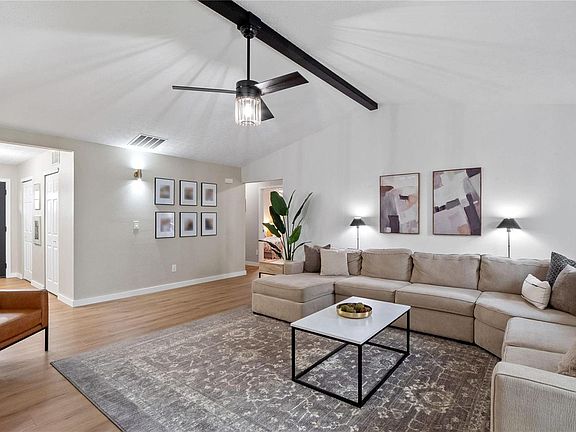 This beautifully maintained home features newer luxury vinyl plank flooring throughout, gas fireplace, a new roof (2023), and new HVAC and water heater (2023). Enjoy great curb appeal with stunning landscaping including a beautiful sunroom w/ composite deck overlooking the fenced back yard and established flower beds. Vaulted cielings can be found in the main living areas and kitchen with features granite overlay countertops, stainless appliances & new backsplash. Just off the kitchen you'll find an added laundry/mud room with folding table and ample extra cabinetry. You'll also love the gorgeous separate dining area that could also be a great flex room for 2nd seating area. The Primary bedroom boasts a walk-in closet and a recently remodeled bathroom with double vanity and spa like shower with 2 rainfall shower heads. Rounding out the home are 2 guest beds, full hall bath, and bonus room currently used as an office(has W/D hookups) & the spacious 3-car garage. Additional Rooms: Sun Room