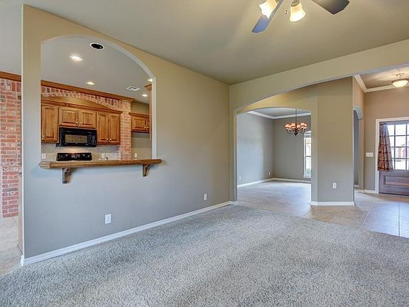 Fantastic find in Edmonds Thomas Trails addition! Beautiful and open Kitchen with Brick accents and Tile floors. Generous eat in area + Optional room that could be a formal dining, office, or 2nd living area. Family rooms centers around the fireplace and features an ample area to mount a Large TV over the FP with lots of room for Living Room furniture. The master retreat features raised ceilings & a private bath with double vanities, a corner Whirlpool tub, Separate Shower and a Walk in Closet with built in Storage. This home includes a lovely backyard with a separate sitting area that's joined to the back porch by custom stonework. Edmond Schools of John Ross elementary is less that 1/2 mile away.