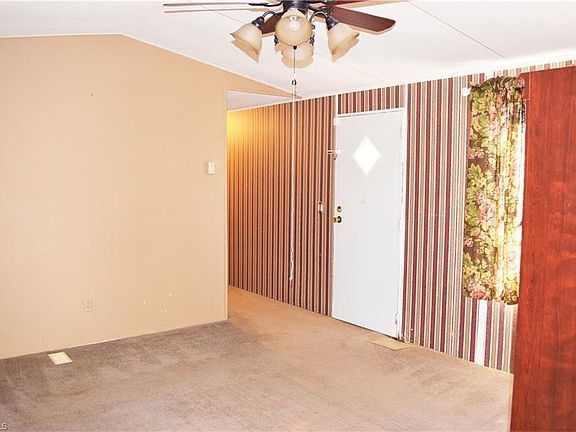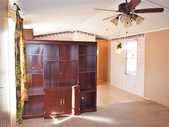 Single-wide home on 1.12 acre lot. Split floorplan with 3br/2ba. Eat-in kitchen. Laundry room with shelving. Deck with handicapped ramp. 2 storage buildings. Single-wide is personal property.