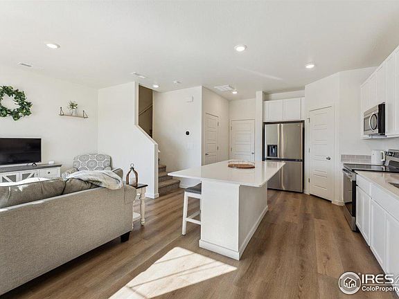 Charming & Modern 3-Bedroom, 3-Bath Townhouse with Loft and Mountain ViewsWelcome to this exceptional 3-bedroom, 3-bathroom townhouse nestled in the highly sought-after Mountain View West neighborhood of Johnstown. Backing to the expansive fields of the YMCA, this home offers a rare sense of openness and privacy-perfect for enjoying peaceful views and the feeling of extra space right in your backyard.Thoughtfully designed with comfort and style in mind, this two-story home features spacious living areas, tasteful modern finishes, and an abundance of natural light throughout. The open-concept main floor seamlessly connects the inviting living room to a chef-inspired kitchen complete with granite and quartz countertops, sleek stainless steel appliances, 42" cabinets, and a large center island ideal for entertaining or casual dining.Upstairs, a versatile loft adds flexibility for a home office, playroom, or cozy second living area. Enjoy mountain views from the bedrooms, including a serene primary suite boasting a walk-in closet and an ensuite bathroom. Two additional bedrooms and a conveniently located upstairs laundry room round out the upper level.Step outside to a private patio where you can unwind or take in the serene views of the open space behind. A low-maintenance, fully fenced front yard is perfect for your pet, and the heated two-car garage adds extra comfort in the winter months.With low monthly HOA fees covering landscaping and snow removal, plus a prime location just minutes from downtown Johnstown, the YMCA, parks, shops, restaurants, and I-25, this home effortlessly combines suburban tranquility with everyday convenience.Don't miss your opportunity to own this move-in-ready gem with stunning views and room to breathe-schedule your showing today and fall in love with your new home!