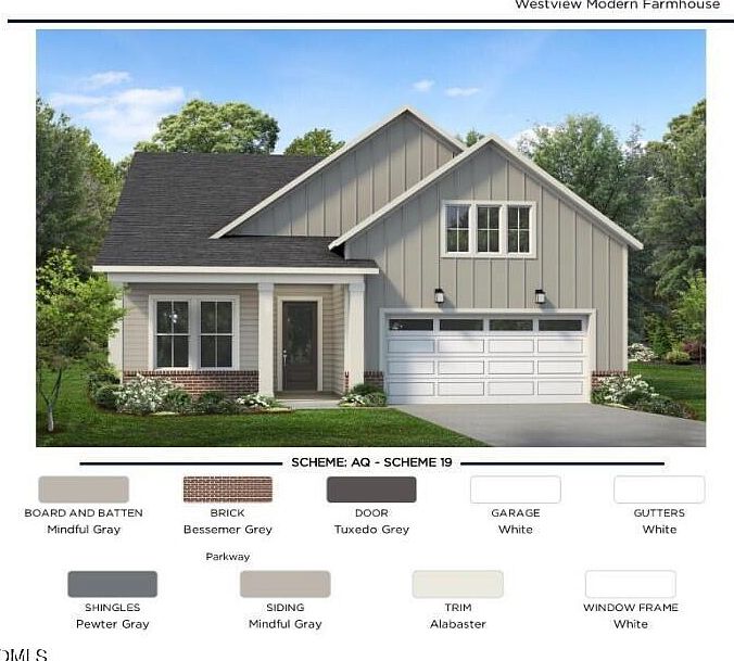 Thoughtfully designed Westview plan with a Modern Farmhouse elevation, offering an open concept layout with curated interior selections. The kitchen includes a 36 inch gas cooktop with wall oven and microwave, quartz countertops, tile backsplash, upgraded cabinetry, and enhanced lighting including island pendants and under cabinet illumination. Luxury vinyl plank flooring spans the main living areas, with a butler's pantry and a dedicated laundry room featuring cabinetry and a utility sink. The primary suite features a zero threshold tiled shower with extended surround, niche, hand shower, and frameless glass enclosure. Additional features include a screened porch, tankless water heater, comfort height toilets, upgraded plumbing fixtures, black interior door hardware, and added electrical and lighting enhancements throughout. Exterior colors and finishes are per the approved selection package. Features and dimensions are subject to final construction and buyer verification.