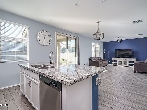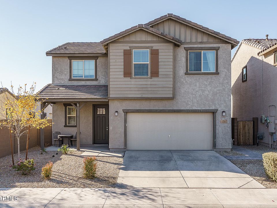Welcome to your new home in gated Roosevelt Park which offers a beautiful pool, spa, and playground for its residents! This original-owner home offers 3 bedrooms & 2 baths in 1779 SqFt with a main floor great room and upstairs loft. The kitchen has white cabinets, stainless appliances including a gas range, and an island with a breakfast bar. Sliding glass doors open up to the covered patio with roll-down shade, extended paver patio, and a low-maintenance backyard with artificial turf for kids and pets to play on. The bedrooms and laundry room are upstairs. The primary has an en-suite bath with extended vanity, oversized shower, and a walk-in closet. Other features include a 2 car garage with epoxy floors and a service door to the backyard.