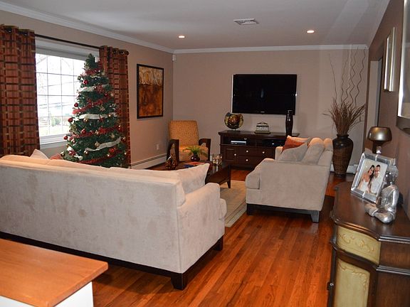 This 5 bedroom, 3 bath bi level home is ready to be called home sweet home! All upgrades have been done to this amazing home in a great location overlooking black brook park. As you enter into this home the stairs take you up to the first floor living space, living room ,formal dining room, custom kitchen, 2 baths and 3 bedrooms. The ground level rooms are 2 bedrooms, family room, full bath and laundry area. New kitchen features cabinetry with a lifetime warranty, granite countertops, tile back splash and ss appliances. 2 Full bathrooms have been renovated complimented by beautiful tile work. HW flooring throughout the home has been refinished. All new tile flooring in the kitchen, bath and ground level family room. New furnace, hw heater 2013, windows & roof 2004. custom trim work, sprinkler system