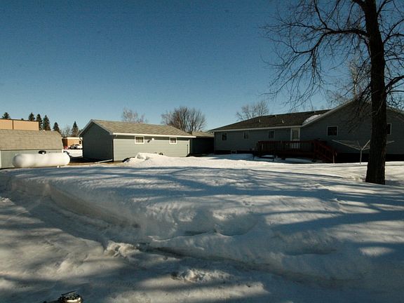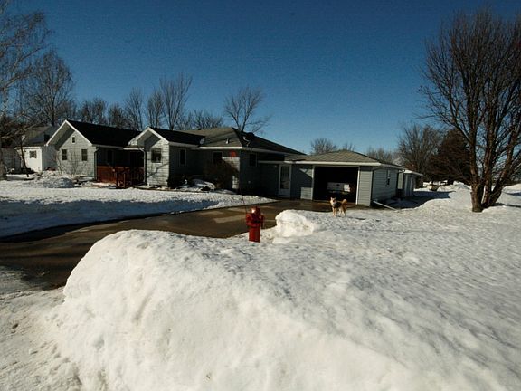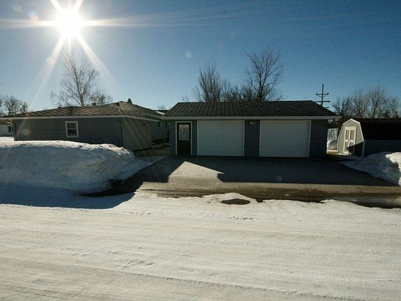 Enjoy small town living in this updated with a heated single attached and double detached garage along with a storage shed. This home has many great features to include front and back deck steel siding, new windows, large living room with vaulted ceiling and gas fireplace open to the dining and kitchen. Also enjoy being across the street from the school and a block from the hospital and golfing.
