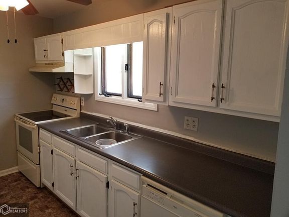 Adorable and cozy 3 bdrm, (2 up and 1 down) and 1 bath ranch home located near high school and pool. This home has some updated wiring, galley style kitchen with newer kitchen cabinets and glass door hutch cabinet. Appliances include, stove/range, fridge, DW, washer & dryer.