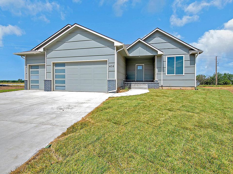 Welcome to Saddlebrook! This stunning 5-bedroom, 3-bath home is nestled in a beautiful neighborhood within the Valley Center School District. Park City’s New Home Incentive Program offers $4,000 check to buyer after closing and a 75% property tax reimbursement for the first 5 years, making this an even more attractive opportunity. Step inside to discover a spacious open floor plan with elegant coffered ceilings in the main living area. The main level features a split-bedroom layout, with the master suite on one side and guest bedrooms on the other. You’ll appreciate the abundance of natural light from the large windows, a convenient walk-in pantry, and main-level laundry. The master suite is a true retreat, boasting a spacious bedroom, double vanity, custom tiled shower with a sitting bench, and a walk-in closet. The lower level is perfect for entertaining, featuring a huge family room with view-out windows and walk-out access to the expansive backyard. SOD and a sprinkler system are included! Additionally, the home includes two large bedrooms, a full bath, and ample storage space in the basement. Don’t miss this incredible opportunity to make this home yours!