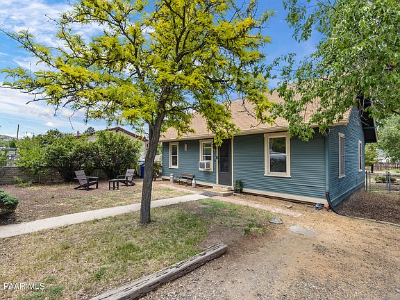 Cute craftsman bungalow in downtown Prescott, less than 1 mile from Courthouse Plaza. 3 bedrooms, 1 full bath, eat-in kitchen and a sunroom/laundry room off the dining area--and a stand-up basement awaiting your creative touch! Lots of natural light. Mature trees. Wood burning stove in the living room provides cozy extra heat. Zoned MF-H with plenty of room to add a guest house, garage or combination! Easy access to the rear of the property from the wide, paved alley that runs behind the homes. The home is on city water and sewer There is an antique hand-dug well (not functional) in the well shed,Home is being sold AS-IS. Seller will make no repairs.