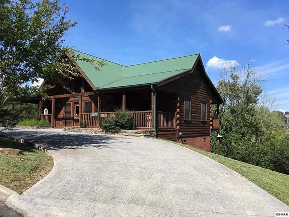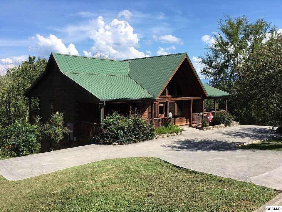 This cabin has a beautiful mountain seasonal view from rear deck. What a perfect floor plan, two separate master bedroom suites. Easy access to Sevierville and Pigeon Forge without the traffic of the Parkway. No steep winding roads, easy ride in all kind of weather. Extra large cement driveway for at least 4 vehicles, flat parking- no hills! Two fireplaces one in master bedroom the second in the living room- just waiting to cozy up too this winter! The loft not only has a beautiful view, pool table with a futon to expand your guest capacity. The rear deck has a section in the middle that is screened in. The hot tub is just calling your name, or swing away on the porch swings- there are two! Nice property, over 3/4 of an acre with plush green grass for outdoor fun. This cabin is in excellent condition, with a long history of rental income.