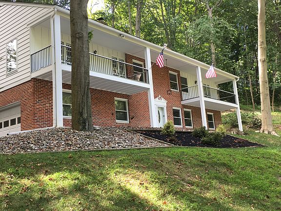 Nature abounds in this serene and private wooded setting. This meticulously maintained home has been recently renovated and is situated on a hilltop with lovely views in all directions. Boasting 5 bedrooms and 3 baths, there is nearly 3000 square of living space which offer all the conveniences of contemporary living. To the right of the entry foyer is a spacious, but cozy family room with a raised-hearth brick fireplace. Just off the family room are two bedrooms, one of which is large enough to be used as a second Master Bedroom--perfect for multi-generational living! A full bath with dual sinks and an over-sized laundry room complete the first floor. The attached, immaculate two-car garage has freshly painted floors and ample built-in shelving for storage. The main living space is located on the second level, with hardwood floors and over-sized windows throughout, which allow for plenty of sunshine and natural light. The living room, complete with brick fireplace and french doors leading out to a balcony, is open to a lovely dining room, with an elegant nickel chandelier and plenty of space for entertaining. Adjacent to the dining room, the eat-in kitchen has brand-new stainless steel appliances which all come with ten-year warranties. Granite countertops and a large pantry make this a very pleasant work space. In the master-suite, there is a third fireplace with brick-surround and a beautifully updated master bath and luxurious walk-in closet. A second balcony extends off the front of this bedroom, and a set of french doors lead out to the tranquil, back patio, which stretches along the entire house. There is plenty of room for grilling, entertaining or just taking in the bucolic setting. Two additional bedrooms, and a third full bath round out this second level. A central intercom/sound system allows for music throughout all the main living areas and even the garage. This house is a true nature-lover's delight, and is in close proximity to the charming town of Media, train, and major roads.