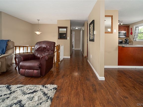 MOVE IN READY! This raised ranch has so much to offer. When you walk in and head to the main floor, you'll find beautiful & durable laminate flooring throughout. The living room offers a ton of natural light, with a dining room/kitchen combo. Off the dining room is a sliding glass door that leads to a nice size balcony deck with a pergola/gazebo for lots of shade! Once back inside, the kitchen offers custom built-ins and all appliances stay! Down the hall are all 3 bedrooms and 1 full bath. The main bath was redone in 2017. Downstairs you will find it nice and cool on those hot summer days with neutral color tile flooring, half bath, washer & dryer and a walkout/access to the garage. There is storage space and room to spread-out and relax! Radon mitigation system was installed in 2019. The back yard is fenced in and surrounded by great neighbors! Don't miss out on this great Liverpool buy! *** Sellers have asked for BEST & FINAL by SUNDAY @ 3pm*** They wanted to be as fair as possible and let everyone see the property!