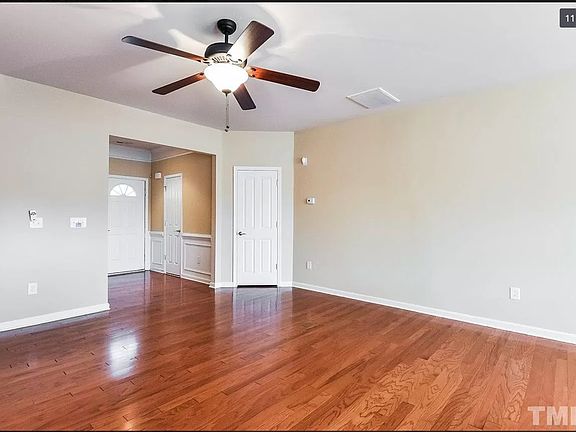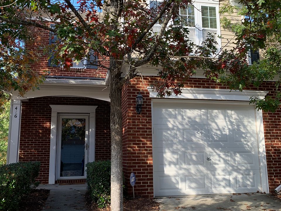 Gorgeous end-unit townhome in prime location, minutes from RTP, Parkside Plaza, Movie Theater and nestled on arguably the BEST lot in the whole neighborhood. This move-in ready gem features corner unit, fenced backyard, the best of open concept living, corner pantry, appliances with modern finishings and plenty of storage. Kitchen opens into dedicated dining space and spacious living area complete with beautiful hardwood flooring and an abundance of natural light. Back of the unit has a glass door for entry to the fenced patio and backyard. Upstair Owner's Suite has everything you could ask for: walk in closet, tray ceiling, and beautiful tiled bathroom featuring double vanity, and walk in shower. Upstairs also features tiled hall bath, two additional bedrooms, and laundry room with washer/dryer. Since you have only one shared wall and a completely open area to the left of the home. All of this PLUS a one car garage and additional parking spaces behind the unit, this home has it all! Come see all the elegant touches that have elevated an already beautiful house into the perfect home. Adjacent to the neighborhood pool. Renter responsible utilities. Owner pay HOA