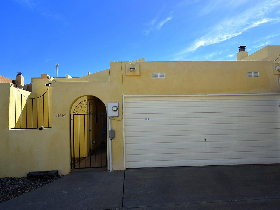 New Price!! Welcome mat is out on this quiet tucked away single story patio home in desirable Pinon Creek. Enter through a private secured courtyard, into vaulted beamed ceilings, clerestory windows with lots of natural light. Great room features a kiva fire place built-in entertainment center and over sized custom built-in cabinets.Spacious master bedroom with custom tile shower. A charming backyard to enjoy your morning coffee while soaking in the views of the foothills. This is move in ready and priced to sell, don't miss this single story gem! Close to shopping, bus line, KAFB Four Hills park and restaurants.