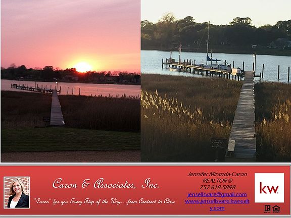 WOW! waterfront condo on the Elizabeth River! Enjoy pristine westward sunsets from your deck all year around. First floor boasts ceramic tile foyer, cathedral ceilings, new "slate" steel flat-top stove and new dishwasher, pantry, updated 1/2 bath with granite! Open floor plan into Great room with fireplace. New hardwood flooring on 1st floor. All new paint, fixtures and custom molding through-out! 2nd Floor has 2 large master suites each with updated baths and walk-in closets. Storage space through-out including attic, exterior shed & under deck storage. Sip morning java or evening vino from your huge deck with new electric awning! The sunsets will mesmerize you! Take a walk on the pier and perhaps a quick boat-ride from your personal boat slip! The Elizabeth River easily takes you to the James River, Waterside, Chesapeake Bay and the Ocean! Maintenance free living at its finest! BRAND NEW ROOF/SIDING! All new rocks being laid for the drive-way.