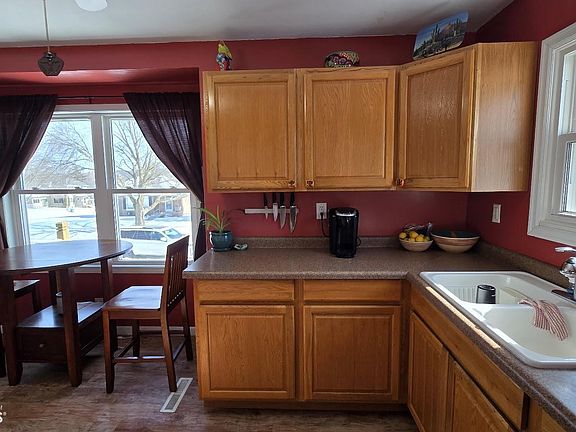 Welcome to this charming updated home, perfectly poised for its next owners! Over the past decade, this property has undergone an impressive transformation, making it a ready-to-move-in gem. The beautifully landscaped exterior, complete with a newly redone retaining wall (2021), enhances the curb appeal and welcoming atmosphere. This home features a detached one-stall garage with convenient alley access on the west side, providing ease of entry. A limestone path invites you from the garage to the main entrance on the south side. Step inside to discover a galley kitchen, remodeled in 2014, complete with all essential appliances. The bright and airy living room boasts a large east-facing window. All windows throughout the home were updated in 2020 & 2021.The main level showcases two comfortable bedrooms and a beautifully remodeled full bathroom (2020). Head down to the lower level, where you’ll find ample potential for a cozy family room, accompanied by a spacious laundry room and a second full bath—ready for your personal touch. Additionally, a transferable warranty on the Midwest Basement Solutions/Thrasher steel support system adds peace of mind. The roof was replaced in 2023, providing further reassurance for years to come. With all these updates and improvements, the only thing left to do is move in and make this your next home!