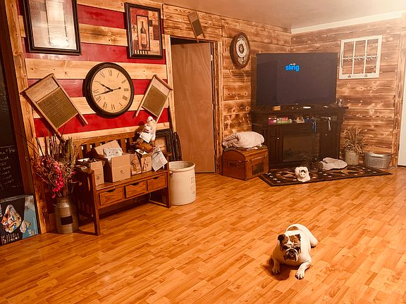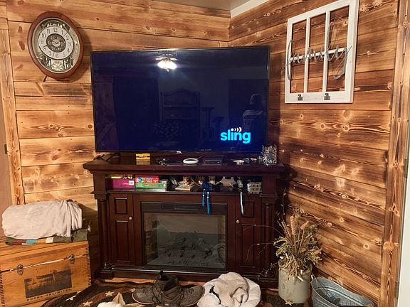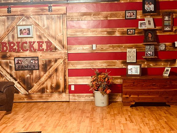 Check out this charming Chalet style home on 5.31 acres. It has a cozy country feel even though your close to town! The charming red metal roof provides additional character. You can sit in the breezeway even on a rainy day! There is a fireplace in the dining area and the kitchen is nicely updated. The home has been updated by the current owners to include shiplap style walls and a barn door.