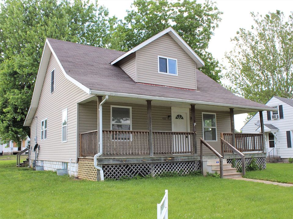Updates throughout- this home has hardwood floors that have been restored, new venting, newer furnace and AC, new roof, and new garage. Small fenced area perfect for a pet. Main floor laundry room with wood shiplap. Formal dining, spacious front porch, and large closets in each room are an added bonus. Property is within walking distance of the elementary schools, pool, and ball complex.