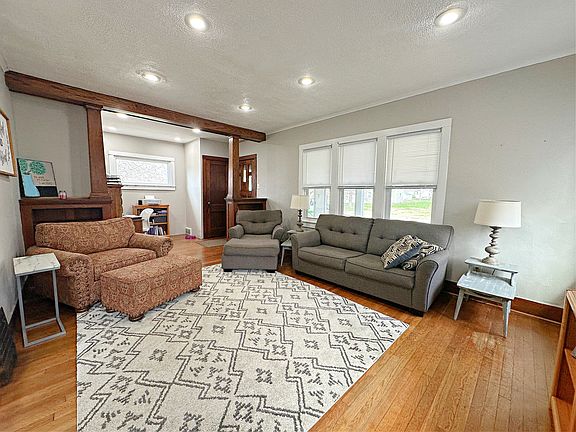 Charming 3 bedroom, 2 bathroom home sitting on over half an acre with modern updates and classic character. This beautifully maintained 1.5 story home offers the perfect blend of timeless charm and modern convenience, featuring original woodwork and unique details paired with tasteful modern updates throughout. A spacious enclosed front porch welcomes you into a warm and inviting foyer that opens to a large living room filled with natural light. The formal dining room showcases stunning built-ins and expansive windows. The kitchen standouts with ample oak cabinetry, stainless steel appliances, and plenty of room. All three bedrooms are generously sized, led by a remarkable 14' x 27' primary suite featuring double closets, multiple large windows, and a beautifully updated bathroom with a walk-in shower, large vanity, and built-in linen storage. Additional highlights on the main level include a second updated full bathroom, a sitting nook, a convenient mudroom, and excellent closet space. Upstairs, the 2nd level offers bonus space perfect for a home office, additional bedrooms, or extra storage. The full basement includes an on-demand water heater, a whole-home sediment filter, and additional storage opportunities. Step outside to the expansive yard with a concrete patio, mature trees, and ample space to enjoy the outdoors. The property also includes a 2 car garage with a 17' x 17' attached bonus room, as well as a drive-through 1 car garage with automatic 8' roll-up doors. Come experience the charm and functionality of this home for yourself!
