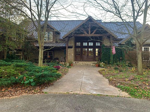 Remarkable custom-built retreat tucked away in southern Indiana surrounded by pastures adjacent to a 140-acre equestrian facility. This 5-bedroom, 5 bath residence can be more than a just a single-family home- make it a corporate retreat, B&B or VRBO. This home is full of one-of-a-kind rooms that are warm and cozy yet open concept, vaulted beamed ceilings, custom stone and cedar stairway, luxury amenities, chef's kitchen, entertainment areas and elevator access to all 3 levels. Plus, full apartment for in-law suite, property manager or additional rental income. Energy efficient with 4 geothermal units and energy star appliances. See the attached home description for room by room details. 5+/- acres to be split, taxes are with 40 acres. Additional land available for purchase.