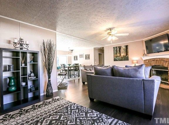 Gorgeous home with 3 BR / 2 BA home in quiet subdivision close to I-40 giving great access to Raleigh, Clayton & Smithfield. #Interior features include *open layout w/ large rooms *fresh paint *new flooring includes laminate wood, laminate vinyl & carpet *wood burning FP *kitchen eating bar *food pantry *master suite w/ walk-in closet *master bath with garden tub & separate shower *spacious secondary bedrms #Exterior features *large deck overlooking fenced back yard * tree line for privacy *storage shed