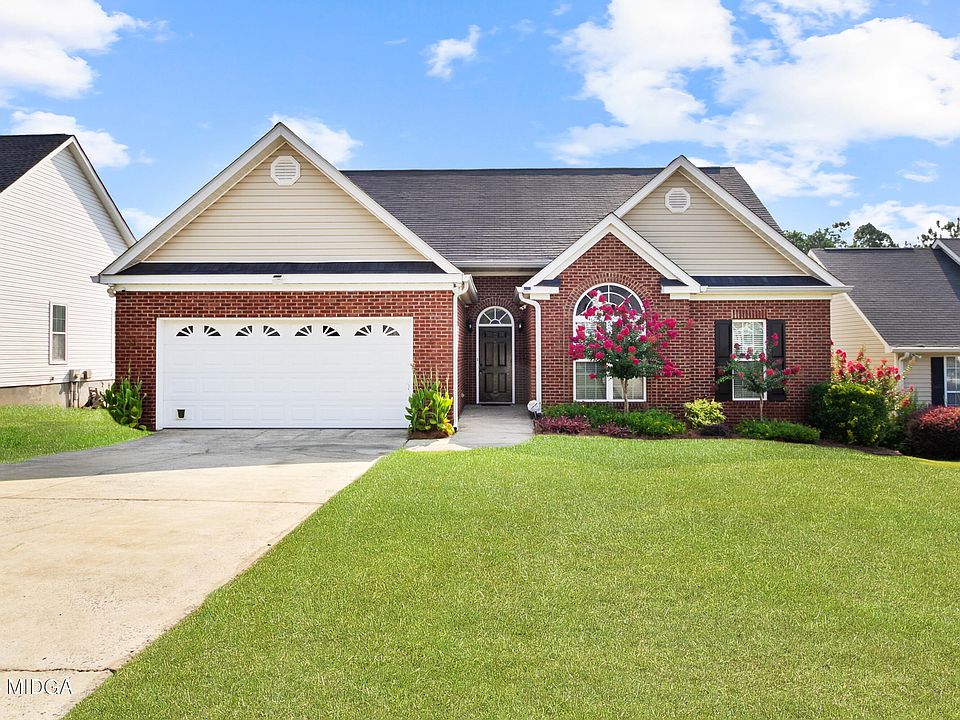 The brick front exterior paired with easy-to-maintain vinyl siding ensures durability and curb appeal, while a spacious two-car garage provides ample parking and storage space. A versatile bonus room awaits upstairs, ready to serve as a private fourth bedroom, home office, or recreation area to suit your lifestyle needs.