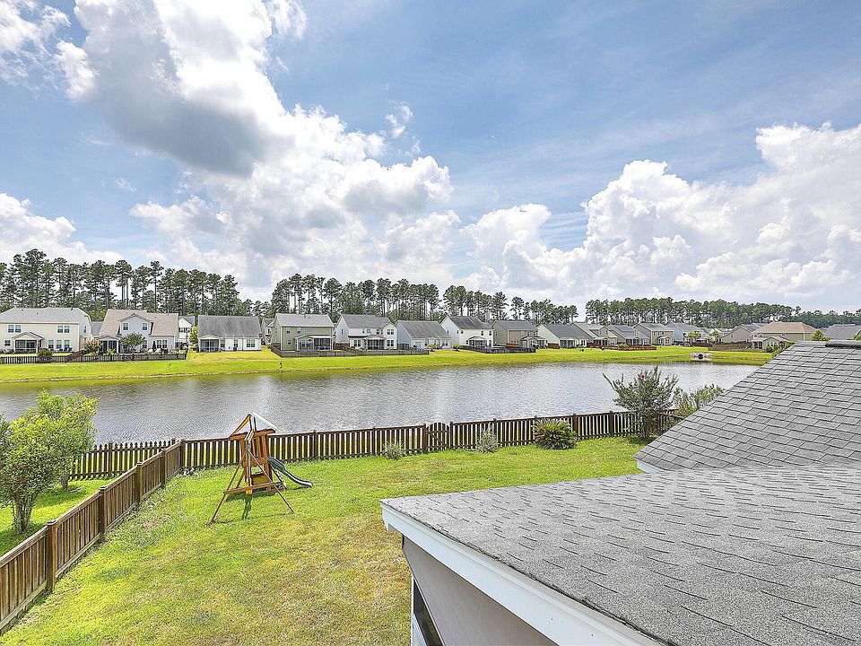 STUNNING 5 bed 3.5 bath on the pond in Cane Bay! Full of natural light, this home boasts a spacious upstairs master retreat with balcony overlooking the pond, en-suite bath with soaking tub and tiled separate shower, and HUGE closet with built-in organization. There are also 3 large secondary bedrooms upstairs and a very spacious loft area. Downstairs, another bedroom with private bath is perfect for guests or as a MIL suite or even a downstairs master. There is a formal dining room with chandelier, private office space with lighted nook (perfect playroom / pet area!) and french doors, & an impressive kitchen with eat-in area that flows into a large living room with surround sound. The screened patio is off of this area and leads to the large backyard with playset overlooking pond.This Stonefield Floor plan makes sense with tons of storage and so much room to spread out. High, coffered ceilings, custom wall and window treatments, hardwood stairs with wrought iron spindles, UPSTAIRS laundry room... this home is a must-see.