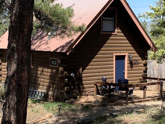 The Ideal Colorado Log Cabin in the Woods!!!! This extreamly well maintained log cabin has had the kitchen and bathroom beautifully remodeled and updated with new stone and tile in the bathroom and all new cabinets and counters in the kitchen. Located in a very private wooded setting overlooking the mountains and views of historic Chimney Rock. Bedroom is in upstairs loft. Fully furnished with extra sleeping couch downstairs for guests. Heating with ETS system. From the back deck enjoy the outdoors and mountain views complete with outdoor furnishings and grill and sun canapy. Take a walk down the path to a cozy firepit and enjoy the wooded mountain views. Storage shed allows for more storage and property has a remote controled gate for more privacy. This cabin has been well cared for and is a Colorado Dream retreat! Call soon for your showing today!