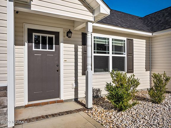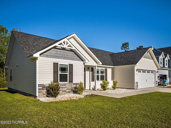 Your country charmer awaits!! Located on a 1.23-acre parcel, this like-new home is minutes to Jacksonville's regional airport and an easy commute to either Camp Lejeune or the New River Air Station. Featuring an open floorplan between the living room, dining area, and kitchen, this home is perfect for entertaining friends and family. The living room is appointed with a corner fireplace and the kitchen has great cabinet and counter space while the island is also perfect! The primary owner's suite is on the right side of the home and features a large walk-in closet and a fully equipped bathroom along with an additional walk-in closet. The two guest bedrooms are on the opposite side of the home and are flanked by the guest bathroom. Out back you will find an inviting patio and additional privacy because there's nothing but woods to the rear. All appliances convey to include the refrigerator, washer, and dryer so make your appointment today and enjoy!