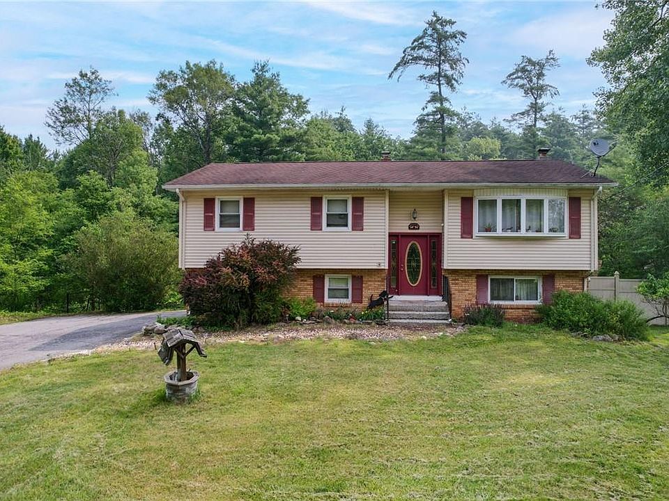 Feel like your in the country when you are sitting on your privately set backyard listening to the stream. Fruit trees in yard. Just minutes to town for shopping and highway for commuting. Home features 3 beds, 1.5 bath, generator hook up, central air, large bedrooms. Dining room with sliders leading to the deck. Lower level has a wood stove, extra room and has a walk out to the back yard. Home is being sold as is. The house sits on the aerial view on the right. Additional Information: HeatingFuel:Oil Above Ground,ParkingFeatures:2 Car Attached,