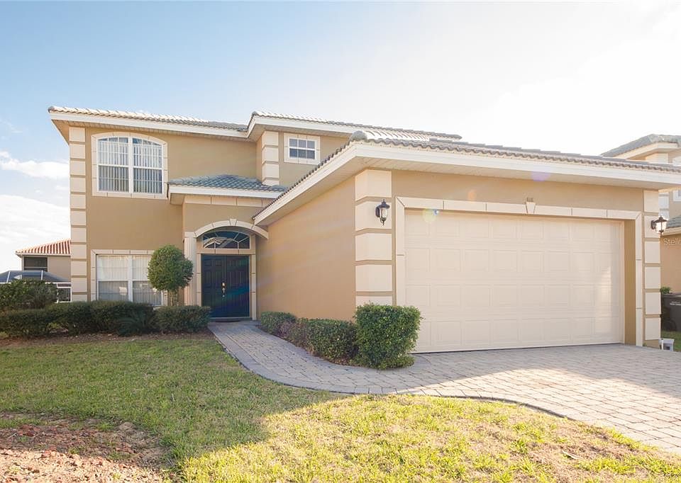 Looking for the perfect home to make your vacation and investment dream a reality? Check out this FULLY FURNISHED, TURN-KEY, 4 bedroom, 4 bathroom, with a POOL and with over 2,300 sq. Ft of living space located in the gated community of Vista Park. This home greets you with LUSH LANDSCAPING and CURB APPEAL with its TILE ROOF from the moment you arrive. Welcoming you inside, into the spacious open concept that effortlessly guides you through the entertainment spaces with high ceilings, recessed lighting, with many additional features with the pool and master bedroom that are designed to assist disabled persons, and an abundance of natural light radiating from the transom windows. The open-concept floor plan is perfect for hosting guests and very wheelchair friendly, this home has been modified including two wheelchair-modified bathrooms and an elevator from the first floor to the second floor. The first floor also features a guest bedroom and a full bathroom. Heading upstairs away from the hustle and bustle you’ll find two master bedrooms, an additional guest bedroom, and a bonus room that is currently being used as a home office. Heading back downstairs through the French doors you are greeted with a spacious lanai overlooking the screened-in SOUTH FACING sparkling HEATED pool, perfect for hosting the summer BBQ or enjoying dinner el-fresco! This home is located in the highly sought-after community of Vista Park which is a short-term rental community. This home is centrally located near many award-winning restaurants, an abundance of shopping options, theme parks, and easy access to major highways (HWY 27, and US-192) that make driving to either coast a breeze! This home is ready for you to make a splash and enjoy the Florida lifestyle to the fullest, so schedule your private showing today!